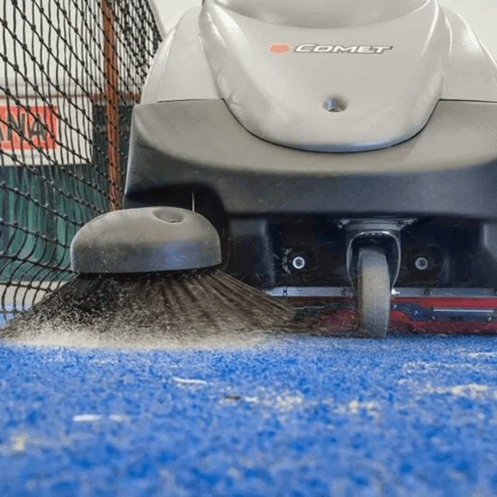 • Courts: Regularly cleaned glass, brushed turf, and maintained nets. Remove ball marks and sand build-up daily.